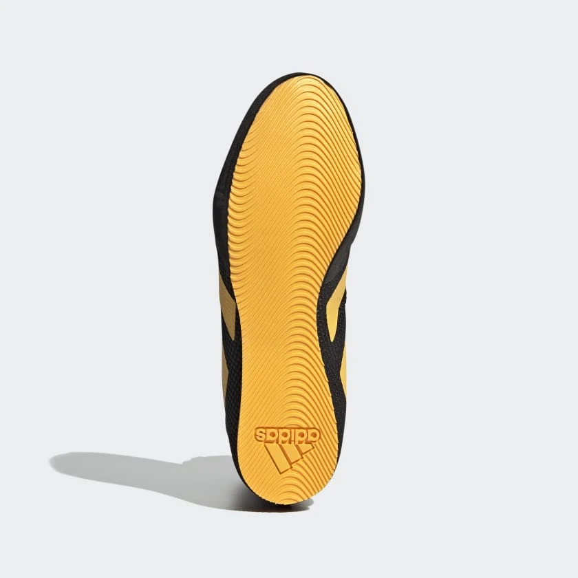 Der Adidas Box Hog 3 in Schwarz/Gold vereint elegantes Design mit hoher Funktionalität. Dieser Boxschuh ist für Boxer gemacht, die Wert auf Geschwindigkeit, Halt und eine moderne Optik legen. Perfekt für den Einsatz im Ring – ob im Training oder im Wettkampf.