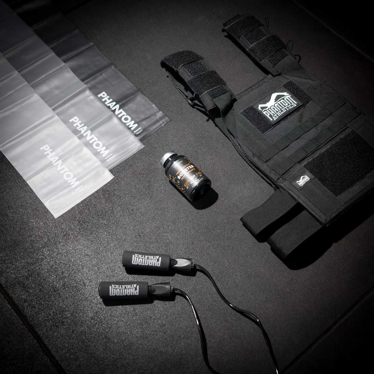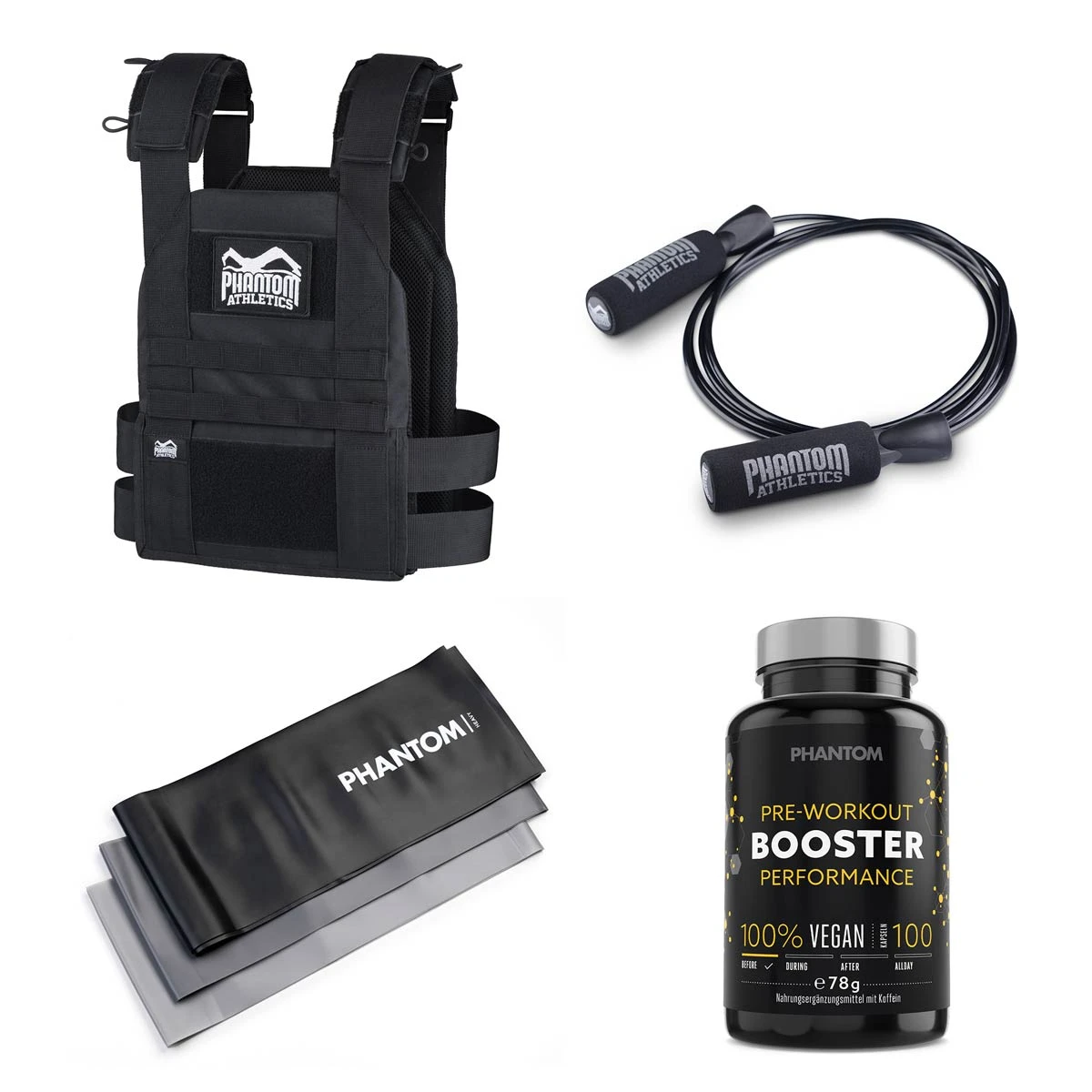 Das Phantom Trainingswesten Set: Hol das Maximum aus deiner Trainingsweste und starte direkt mit dem Tactic Springseil, dem Resistance Band Set sowie dem Performance Booster in dein neues Workout.