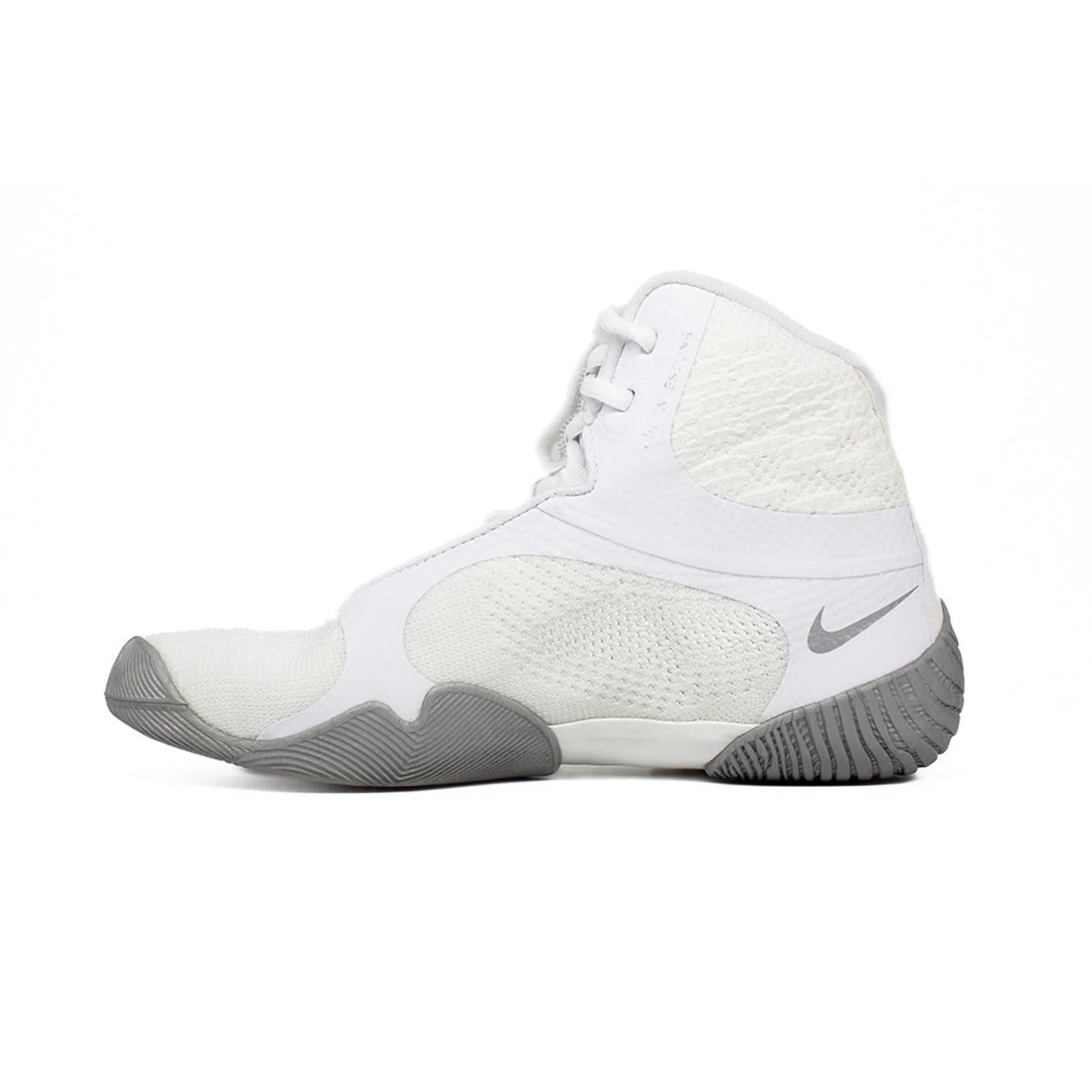 Der Nike Tawa Ringerschuh (Artikelnummer: 2952-100) in Weiß/Silber wurde entwickelt, um Ringern die ideale Kombination aus Flexibilität, Stabilität und Komfort zu bieten. Mit seinem leichten Aufbau und der robusten Konstruktion bringt er die Kraft und Beweglichkeit der Athleten optimal auf die Matte.
